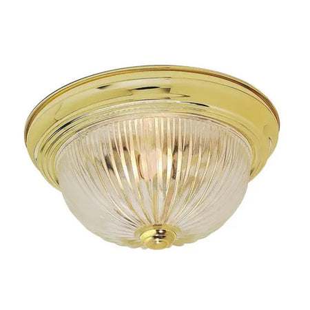 Satco SF76-093, 3 Light, 15" Flush with Clear Ribbed Glass, 60W, 120V, A19 Lamp Type, Medium Base, Polished Brass Finish