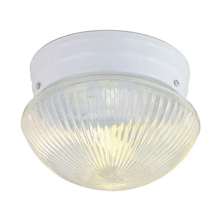 Satco SF76-251, 1 Light, 8" Flush with Clear Ribbed Glass, 60W, 120V, A19 Lamp Type, Medium Base, White Finish
