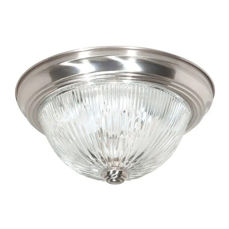 Satco SF76-610, 2 Light, 13" Flush Mount Fixture, Clear Ribbed Glass, 60W, 120V, Medium Base, Brushed Nickel Finish
