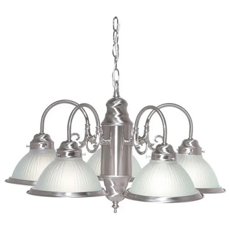 Satco SF76-695, 5 Light, 22" Chandelier With Frosted Ribbed Shades, A19 Lamp Type, 60W, 120V, Medium Base, Brushed Nickel Finish