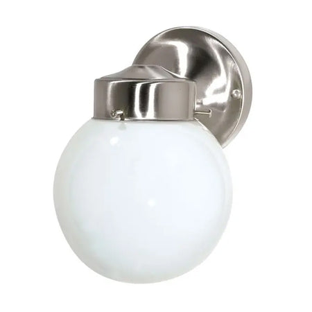 Satco SF76-705, 1 Light, 6" Porch Wall With White Globe, 60W, 120V, A19 Lamp Type, Medium Base, Brushed Nickel Finish