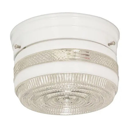 Satco SF77-097, 1 Light 6'' Flush Mount Fixture, Small Crystal / White Drum, 60W, 120V, A19 Lamp Type, White Finish