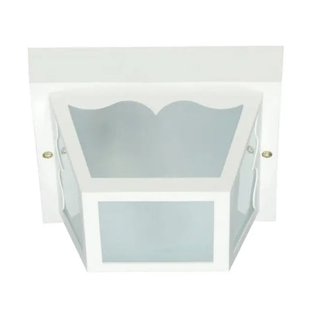 Satco SF77-835, 1 Light, 8" Carport Flush Mount Fixture, With Frosted Acrylic Panels, 60W, 120V, A19, Medium Base, White Finish