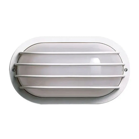 Satco SF77-858, 1 Light, 10" Oval Cage Wall Fixture, Polysynthetic Body & Lens, 60W, 120V, Medium Base, White Finish