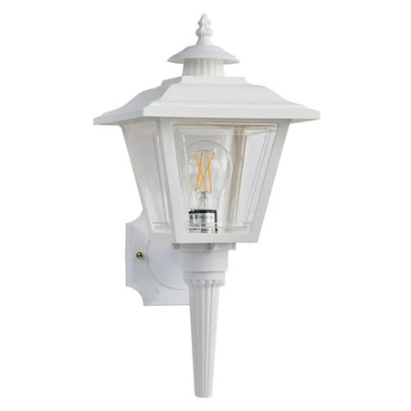 Satco SF77-897, 1 Light, 17" Coach Lantern with Finial, Beveled Acrylic Panels, 60W, 120V, Medium Base, White Finish