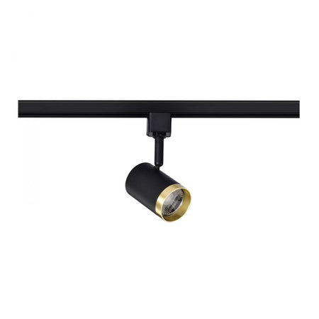 Satco TH637, 12W LED Small Cylindrical Track Head, 120V, 1020 Lumens, 3000K Warm White, 24° Beam Angle, Dimmable, Matte Black and Brushed Brass Finish