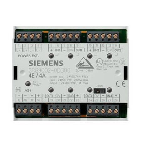 Siemens 3RG90040DC00, AS-Interface Module F90, Digital 4 DI/4 DQ, IP20 4 x Inputs For 3-Wire Sensor External Sensor Supply 4 x Output, 2 A, 24 V DC Maximal 6 A For All Outputs Connection Via Combicon
