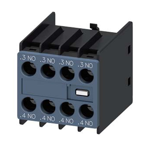 Siemens 3RH29111FA40, Auxiliary Switch, On The Front, 4 NO, .3/.4, .3/.4, .3/.4, .3/.4, Current Path: 1 NO, 1 NO, 1 NO, 1 NO, Screw Terminal, For Contactors 3RT2 And Contactor Relays 3RH2