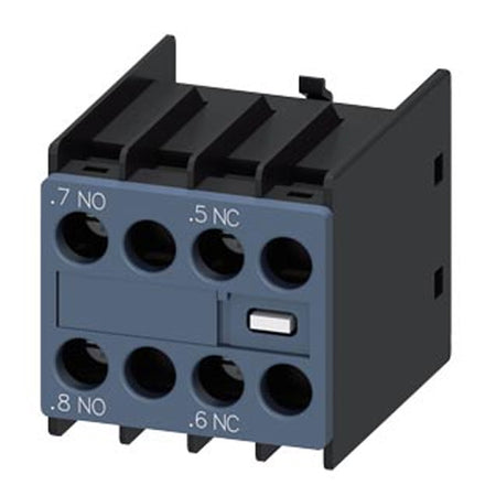 Siemens 3RH29111FB11, Auxiliary Switch, On The Front, 1 NO + 1 NC, 11 U, .7/.8, --/--, .5/.6, --/--, Current Path: 1 NO (Leading), --, 1 NC (Lagging), --, Screw Terminal, For Contactors 3RT2 And Contactor Relays 3RH2