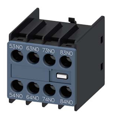 Siemens 3RH29111GA40, Auxiliary Switch, On The Front, 4 NO, 53/54, 63/64, 73/74, 83/84, Current Path: 1 NO, 1 NO, 1 NO, 1 NO, Screw Terminal, Physically Coded, Only With Contactor Relays 3RH2140 And 3RH2440 Combinable (According To EN 50011)