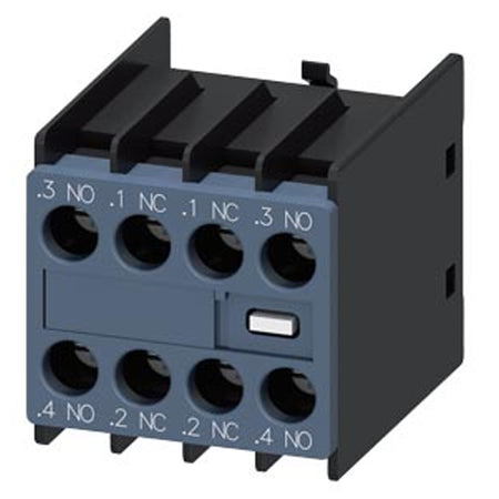 Siemens 3RH29161FA22, Auxiliary Switch, On The Front, 2 NO + 2 NC, .3/.4, .1/.2, .1/.2, .3/.4, Current Path: 1 NO, 1 NC, 1 NC, 1 NO, Screw Terminal, For Contactors 3RT2 And Contactor Relays 3RH2