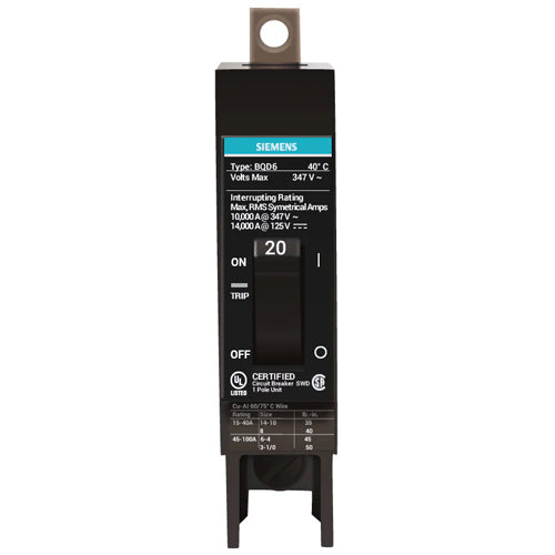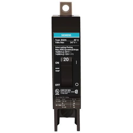 Siemens BQD6120, Low Voltage Molded Case Circuit Breaker, 1 Pole, 20A, 347/600 Volt, Siemens/ITE BQD6 Frame